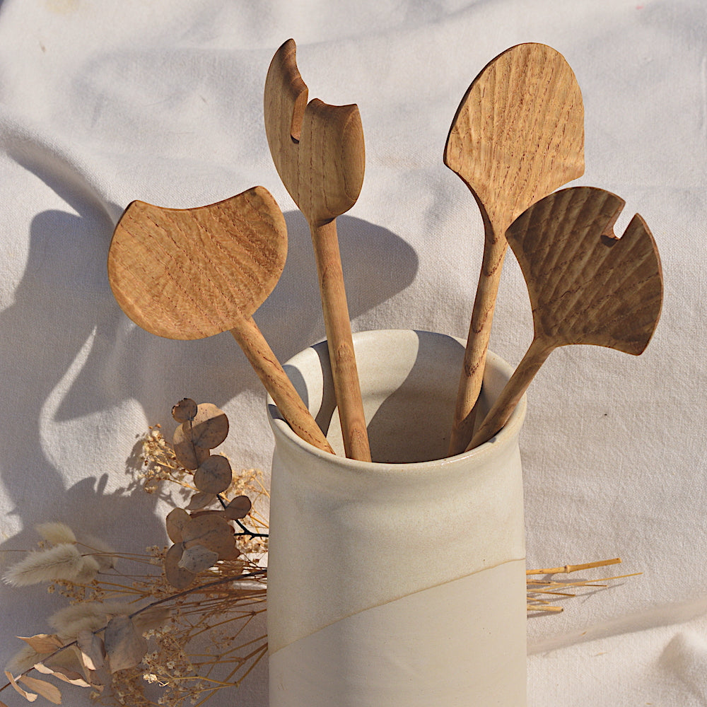 Chaque pièce est créée avec une attention minutieuse aux détails, reflétant la passion et l'expertise de l'artisan qui donne vie à chaque paire de couvert en bois de châtaignier.